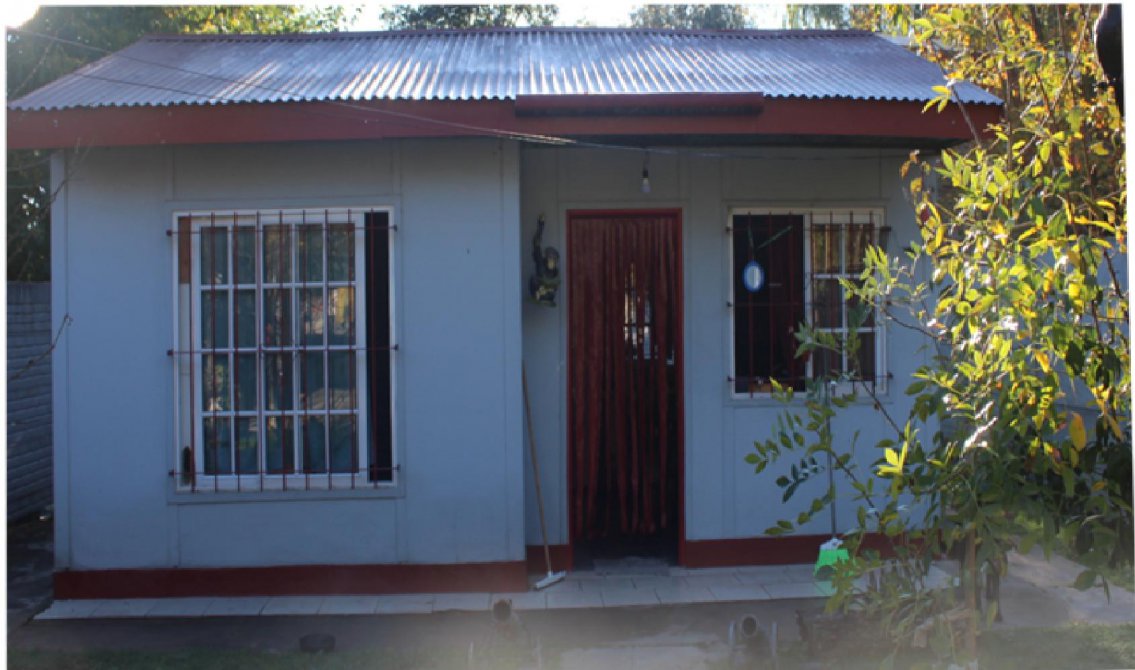 Casa premoldeada de un dormitorio, cocina comedor, baño, lavadero y galería posterior semicubierta, sobre lote de 10 90 de frente por 33 metros de fondo. Está sobre calle mejorada a treinta metros de la avenida Juan Manuel de Rosas con asfalto hormigonado
